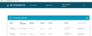 Here you will see your current balance, all transactions with their respective states, and possible withdrawal options: